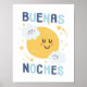 Bonne nuit ! Accrochez cette affiche de nurserie joyeuse dans la chambre de votre nouveau bébé ou enfant. La lune, les nuages et les étoiles de la nuit brilleront intensément dans toute maison bilingue et hispanophone.