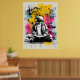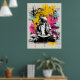 Affiche d'art de rue inspirée des graffitis d'un garçon lisant, avec des détails de pochoir et des éclaboussures vives de jaune, rose et bleu. Un design urbain puissant pour la décoration moderne de la maison, les salles de classe ou les cadeaux pour les fans de graffitis et de culture de rue.