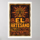 Affiche d'art populaire Visage solaire Impression en bloc gras en orange et noir 1