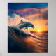 Affiche Dauphin réaliste sautant sur l'océan au coucher du