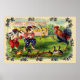 Cette affiche vintage de Pâques montre le lapin de Pâques, un coq et de petits poussins jouant au baseball le jour de Pâques.