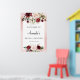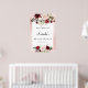 Fleurs rose blush et roses burgundy arrangées avec une végétation fraîche et des paillettes dorées dans un style bohème - pancarte de bienvenue parfaite pour votre fête de shower de mariage