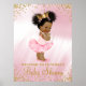 Baby shower de princesse afro-américain signe de bienvenue avec adorable petite fille afro-américaine avec de mignons poils afro bouffés portant un joli tutu rose et des perles sur un satin rose et arrière - plan parties scintillant or. Ce signe d'accueil de princesse ethnique est facilement customisé pour votre événement en ajoutant simplement vos détails. Vous pouvez également supprimer l'arrière - plan satiné et ajouter la couleur de votre choix.