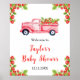 Ce panneau d'accueil à l'aquarelle mignon et amusant est muni d'un camion rose rustique rempli de fraises. Le texte combine écriture manuscrite et polices sans serif pour un look élégant et moderne. Idéal pour un baby shower d'été.