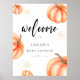 Affiche de bienvenue Baby shower Orange moderne, avec le mot "Welcome" signe. aquarelle orange citrouille or chute baby shower Halloween signe jeux. La typographie calligraphie minimale moderne.