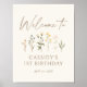 Bienvenue amis et famille à la fête d'anniversaire de votre petit avec cette élégante enseigne à thème fleur sauvage.
