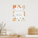Le panneau d'accueil de charme baby shower de chute comporte une bordure de citrouilles d'aquarelle orange et crème et des feuilles d'automne, avec vos baby showers détails d'accueil en lettres grises sur un arrière - plan blanc. Parfait pour les baby showers d'automne ou d'Halloween.