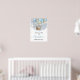 Blue Hot Air Balloon Ours Baby shower Affiche de bienvenue Nous sommes au-dessus de la lune le panneau de baby shower de l'enfant avec une montgolfière en ballons bleu et beige et corbeille tressée brun. Cette invitation à baby shower sur le thème de la lune comprend également un ours mignon, quelques étoiles, une lune et une ligne mono ligne de calligraphie moderne cap. Idéal pour un baby shower sur le thème de l'ours d'un garçon ou sur la lune.