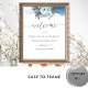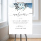 Bienvenue à vos invités à votre cérémonie débranchée avec cette enseigne élégante. Design avec des détails de calligraphie manuscrits modernes et des taches délicates d'aquarelle bleue avec des détails floraux exquis au centre dans un beau mélange de teintes bleues. 10" x 8" est simplement notre taille par défaut, vous avez la possibilité de choisir parmi une grande variété d'options de taille. "REMARQUE IMPORTANTE : Ce panneau est en papier d'affiche haut de gamme, facile à encadrer ou colle/agrafage à peu de frais MDF ou carton de mousse pour affichage. Si vous préférez ce panneau prêt à être affiché dans un panneau de mousse, suivez les étapes simples suivantes : sur cette page de produit de panneau, faites défiler, jusqu'à ce que vous voyez une section avec des images appelées "Transférer la conception à un produit". Utilisez la flèche sur les images pour regarder toutes les options, jusqu'à ce que vous atteigniez l'option "Cartes à mousse". Cliquez dessus, et il transfère la conception dans une planche en mousse pour vous. Initialement, il transfère le design dans une très grande taille de carte en mousse, néanmoins vous pouvez changer le signe dans la taille dont vous avez besoin juste là sur la page du produit et même voir comment il semble déjà dans un stand. Lorsque vous ajoutez ce design à votre panier, il vous dira que le côté arrière est en noir. Ne vous inquiétez pas, car cela signifie seulement que le dos du panneau sera blanc. Si vous avez besoin d'aide, s'il vous plaît envoyez-moi un message et je vous répondrai dès que possible". Une partie de notre collection "Rustic Blue Mountains Mariage" avec une variété de produits de coordination disponibles. Visitez l'ensemble de la collection à l'adresse : https://www.zazzle.com/collections/rustic_blue_mountains_wedding_and_event_collection-119893780903977429 Dimensions de connexion photo de démo avec stand : 20" x 28"