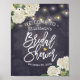 Modèles de l'affiche de l'Affiche de bienvenue de Fête des mariées - Elégantes fleurs d'Hydrangée blanche et lumières à cordes sur Vintage Navy Blue Floral Linen Arrière - plan. Un design parfait pour votre grand jour. Tous les styles de texte, couleurs, tailles peuvent être modifiés selon vos besoins !