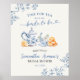 Dusty Blue Chinoiserie Fête des mariées Tea Party Affiche de bienvenue,