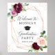 Poster de l'Affiche de bienvenue de la fête de graduation florale de prune moderne violet.
