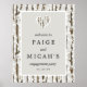 Le design élégant et rustique chic présente des arbres épars, presque abstraits, enneigés. Un rectangle gris offre un espace accueillant. Un coeur qui coule blanc avec l'arbre et le motif de neige est placé en haut pour une touche romantique. Ce panneau d'accueil de la partie de fiançailles fait partie de la collection Tree and Snow Engagement Party. Il contient les modèles do-it-yourself dont vous avez besoin pour créer facilement des invitations uniques et des biens de fête. Vous devriez voir un lien vers la collection sur cette page. Si vous ne voyez pas le lien ou si vous avez besoin d'aide avec un article, veuillez me contacter.