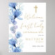 Cet élégant signe d'accueil floral transparent bleu poussiéreux premier sainte communion peut être personnalisé avec vos informations dans la typographie chic. Conçu par Thisisnotme©