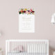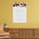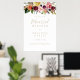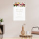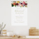 Ce signe d'accueil de la répétition florale boho or est parfait pour une répétition mariage moderne. Le design se compose de plumes sauvages brunes peintes à la main, jaune sauce, blanc, violet, rose, rousse, bordeaux et baies bleues soigneusement disposées en de beaux bouquets.