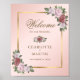 Élégant panneau d'accueil mariage aux motifs rose vif et or orné d'un cadre doré orné de roses et de verdure. Éléments correspondants disponibles. Personnalisez facilement en ligne.