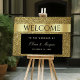 Affiche de bienvenue de mariage noir et or élégant