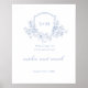 Dusty Blue Floral Mariage Affiche de bienvenue -Monogram & Crest Design Bienvenue à vos invités dans un style élégant avec ce panneau d'accueil mariage floral bleu poussiéreux, imprimé sur une planche en mousse durable. Doté d'une crête classique et d'un monogramme personnalisé, ce signe s'inscrit parfaitement dans les thèmes mariages romantiques et intemporels. L'impression d'affiche légère facilite l'installation de sites intérieurs et extérieurs. Une première impression étonnante et un beau souvenir de votre journée spéciale.