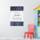 Si vous lancez une soirée à thème "Denim & Diamonds", ce signe de bienvenue vous apportera un accueil chaleureux à votre entrée. Ce panneau d'accueil de 24 po x 36 po présente les bords supérieur et inférieur d'un motif en denim de lavage foncé, avec coutures d'apparence cousues. La zone de texte principale est en blanc avec des zones de texte personnalisables. Les confettis d'argent sont éparpillés dans les parties denim et sont dispersés de façon assez large dans la zone blanche. (Veuillez noter que les confettis sont une image de confettis et non de vrais confettis).