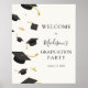 Bienvenue aux invités à votre fête de remise de diplômes avec cette affiche amusante, avec une bordure de casquettes de graduation. Ajoutez le nom du client d'honneur, la date de la douche et le texte de bienvenue personnalisé en utilisant les champs fournis.