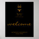 Affiche de bienvenue de la boutique de sous-vêtements et de lingerie. Présente un corset chic en paillettes dorées sur fond noir. Articles assortis disponibles.