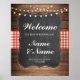 Affiche de bienvenue en bois à carreaux rouges - parfaite pour votre jour de mariage ou événement. Correspond à notre collection.