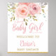 Affiche de bienvenue Fille Baby shower rose pâle
