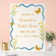 Bienvenue à vos invités avec ce panneau de douche à bulle géant, parfait pour une fête inspirée du jardin. Avec ses flancs dorés doux, sa bordure bleue ondulée chic et ses papillons oranges floutants, ce design romantique donne le ton d'un événement doux et gai. Customisez le nom et la date pour un moment d'entrée chaleureux. Idéal pour les douches du printemps ou de l'été, les épouses amoureuses de la nature, ou toute personne qui planifie une fête féminine, en plein air avec une touche vintage et moderne.