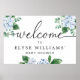Ce panneau de bienvenue présente un design aquarelle d'hydrangea bleu doux avec un titre de bienvenue en calligraphie moderne. Le titre en texte script est une image qui ne peut pas être modifiée. L'image du titre peut être redimensionnée pour s'adapter à n'importe quelle taille d'affiche. Tout le reste du texte est entièrement modifiable. Pour une personnalisation plus avancée de ce design, il suffit de sélectionner le bouton "Personnaliser" ci-dessus.