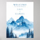 Cet élégant panneau d'accueil mariage de montagne bleu aquarelle peut être personnalisé avec vos informations en typographie chic. Conçu par Thisisnotme©