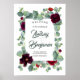 Fleurs rouges bourguignonnes et cadre vert d'eucalyptus mariage affiche de bienvenue