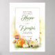 Citrouilles, tournesols, blé, marguerites, feuilles d'automne colorées affiche de bienvenue mariage