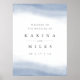 Ce panneau d'accueil mariage chic côtier correspond à notre collection Ebb Tide, avec des lavages d'aquarelle de couleur claire bleu périvent poussiéreux le long du haut et du bas, avec votre texte personnalisé en lettres gris doux. Disponible sous forme d'impression professionnelle ou de téléchargement numérique pour l'impression locale.