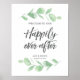 Bienvenue dans votre mariage avec ce panneau vert mariage d'eucalyptus "Bienvenue dans notre Happily toujours après" que vous pouvez encadrer ou clip sur un stand. Personnalisez le texte pour votre mariage. Des invitations et des articles en papier correspondants sont également disponibles. © Mini Moi impressions