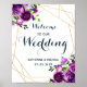 Affiche de bienvenue Mariage florale violette. Vous pouvez trouver des produits correspondants (par exemple Invitations, carte RSVP, carte de réception, Carte de remerciements, bannière de fête, autocollant, etc.) via ce lien https://www.zazzle.ca/tinkercloset/gifts?cg=196337265831164894