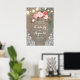 Bois rustique, dentelle, lumières et fleurs roses mariage panneau d'accueil