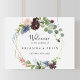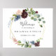 Ce panneau d'accueil mariage géométrique en or bordeaux est parfait pour un mariage d'hiver. L'élégant design boho comprend des fleurs couleur marine, rose vif et des fleurs à l'ombre du vin avec des détails artistiques au crayon. Faites de cette affiche votre propre en ajoutant le nom de la mariée et du marié, ainsi que la date du mariage.