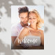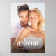 Ce design comprend un signe d'accueil mariage, un simple, avec typographie classique, photo photographie, un élégant, un classique, un minimum, un minimaliste, avec script de calligraphie, parfait pour la répétition dîner signe d'accueil.