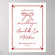 Affiche de bienvenue Mariage italien Whimsical Main Drawn Bow. Bienvenue à vos invités avec cette affiche d'accueil mariage, belle et simple. Le design comporte "Bienvenue au Mariage de..." en haut, avec les noms de la mariée et du marié élégamment affichés au centre, suivi de "Nous sommes si heureux que vous soyez ici !" en dessous. La date du mariage est présentée en bas pour une touche raffinée. Le panneau est encadré d'une bordure élégante et bordée de coeurs placés dans chaque coin et d'un arc délicat en haut. Les polices de caractères et les oeuvres d'art sont rouges, dressées contre un arrière - plan blanc épuré, donnant au design un look intemporel et élégant d'inspiration italienne. Entièrement personnalisable, ce panneau vous permet d'ajuster le texte et la disposition en fonction de votre thème mariage et de votre palette de couleurs. Parfait pour les cérémonies et réceptions mariages, il donne un ton chaleureux et accueillant à votre journée spéciale. Disponible soit en version imprimée, soit en tant que fichier numérique téléchargeable à imprimer à la maison ou localement.