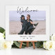 Poster d'Affiche de bienvenue photo de la réception de mariage à budget simple. Design de typographie de script minimaliste moderne.
