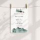Accueillez vos invités à votre baby shower avec cette belle affiche, mettant en vedette des arbres evergreen à l'aquarelle, une maman et un bébé ours et un script amusant "Les aventures commencent". Ajoutez le nom de l'invité d'honneur, la date de la douche et le texte de bienvenue personnalisé à l'aide des champs fournis.