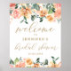 Affiche de bienvenue pour la fête de mariage à thème floral pêche doré