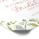 Panneau de bienvenue en eucalyptus pour une baby shower. Facile à personnaliser avec vos informations. Idéal pour une baby shower sur le thème de la verdure ou du jardin. N'hésitez pas à me contacter via le chat si vous avez des questions sur l'œuvre d'art ou si vous avez besoin de personnalisation. REMARQUE IMPORTANTE : Pour obtenir de l'aide sur les commandes, l'expédition, les informations sur les produits, etc., contactez directement le service client de Zazzle https://help.zazzle.com/hc/fr/articles/221463567-Comment-contacter-le-service-client-de-Zazzle-.