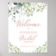 fleursaquarelleélégantpanneau de bienvenueverdurevertbotaniquefeuillageor rose