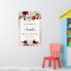 Fleurs roses roses et de Bourgogne disposées dans un style boho avec des étincelles de paillettes d'or - un panneau de bienvenue parfait pour votre fête de douche de mariage