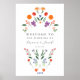 Bienvenue aux invités à votre cérémonie de mariage avec ce magnifique panneau, avec une cascade de fleurs dessinées à la main. Ajoutez les noms du couple, la date du mariage et le texte de bienvenue personnalisé en utilisant les champs fournis.