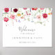 Ce simple panneau d'accueil fleur sauvage multicolore est parfait pour un mariage rustique. Le design se compose d'un assortiment multicolore de fleurs sauvages roses, rousses, violettes, jaunes, blanches, violettes, rouges, bordeaux. Faites de cette affiche votre propre en ajoutant le nom de la mariée et du marié, ainsi que la date du mariage.