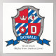 Blason de style chevaleresque avec lettre D en monogramme, affiche d'art parfaite pour la chambre ou la salle de jeux d'un garçon dans des tons de rouge, bleu, blanc et gris. Personnalisez avec le nom de votre enfant et la signification de son nom pour un détail personnel dans la chambre ou la nurserie de votre enfant, cet exemple est pour le nom Donald, Leader mondial. Puissant, courageux, loyal et fier. Impression d'affiche idéale comme cadeau pour un nouveau-né, un baptême, une cérémonie de nomination, un anniversaire de garçon ou un cadeau pour une baby shower. Dessin unique de blason avec tête d'aigle et conception de www.mylittleeden.com