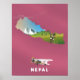 Impression d'affiche de carte illustrée du Népal.