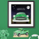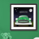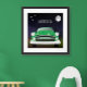 Affiche de chambre de garçon rétro avec voiture verte méchante personnalisée avec son nom MCM design moderne du milieu du XXe siècle